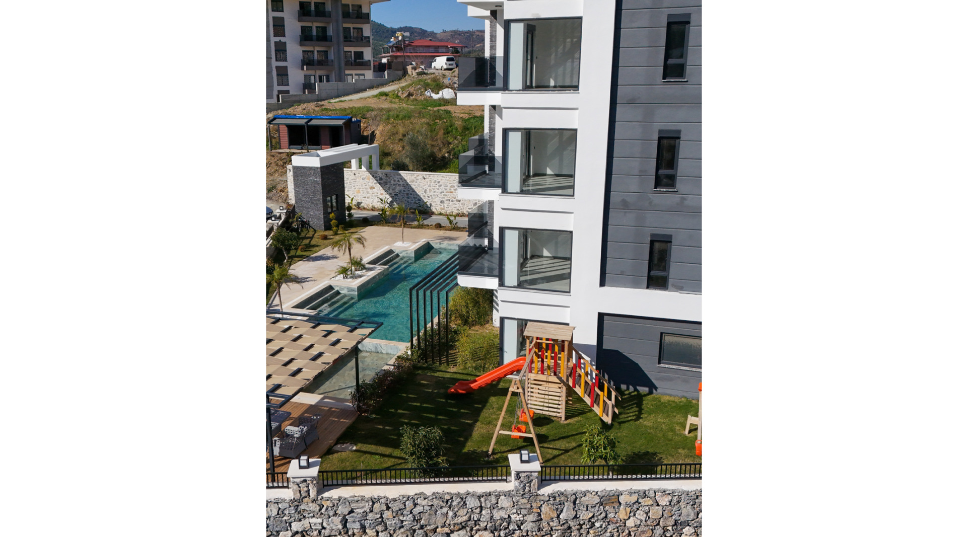 Комплекс полностью завершен и готов к проживанию. Квартиры идеально подходят как для постоянной жизни, так и для отдыха или инвестиций у моря.