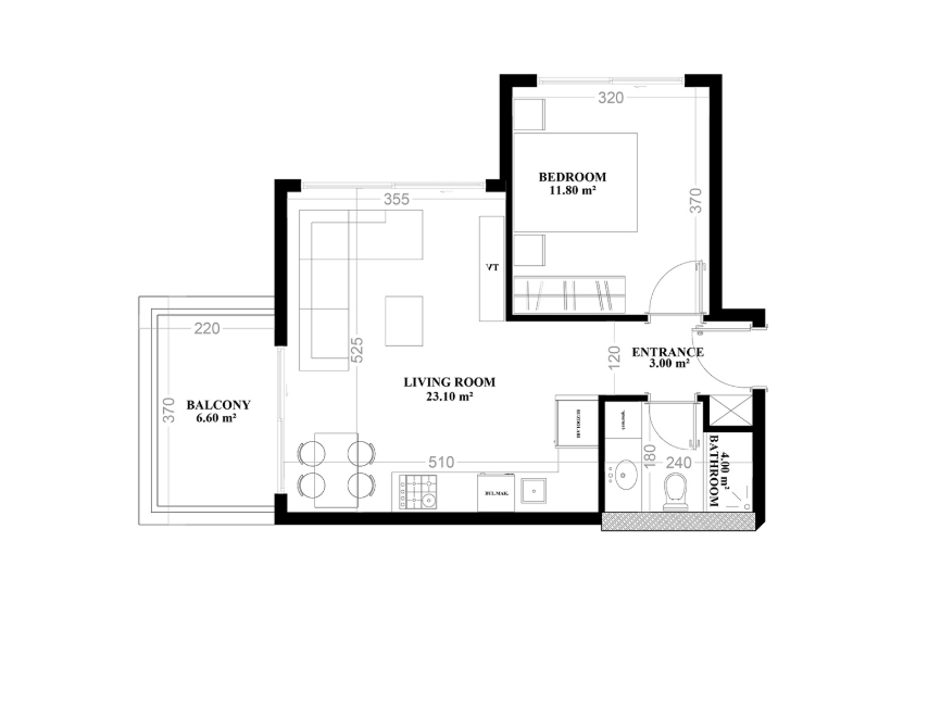 Квартира площадью 57,60 кв.м расположена на 7 этаже одного из трех 12-этажных блоков. Она ориентирована на северо-запад, что гарантирует вам не только прекрасный вид на окружающую природу, но и приятную тень в жаркие летние дни. В квартире предусмотрены все удобства для комфортного проживания: большая гостиная с кухней американского типа, просторная спальня и один санузел.