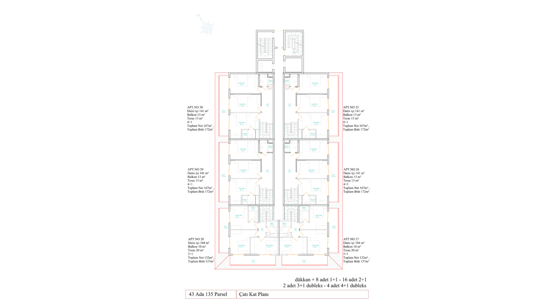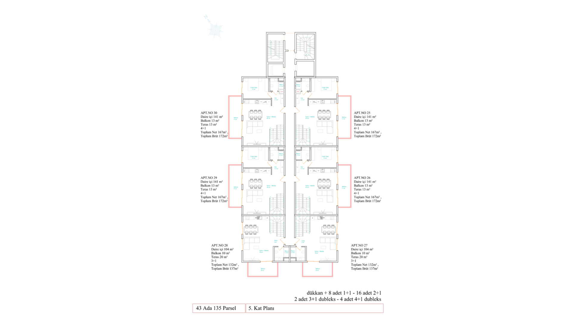 • Пентхаусы 4+1 — 172–174 м²