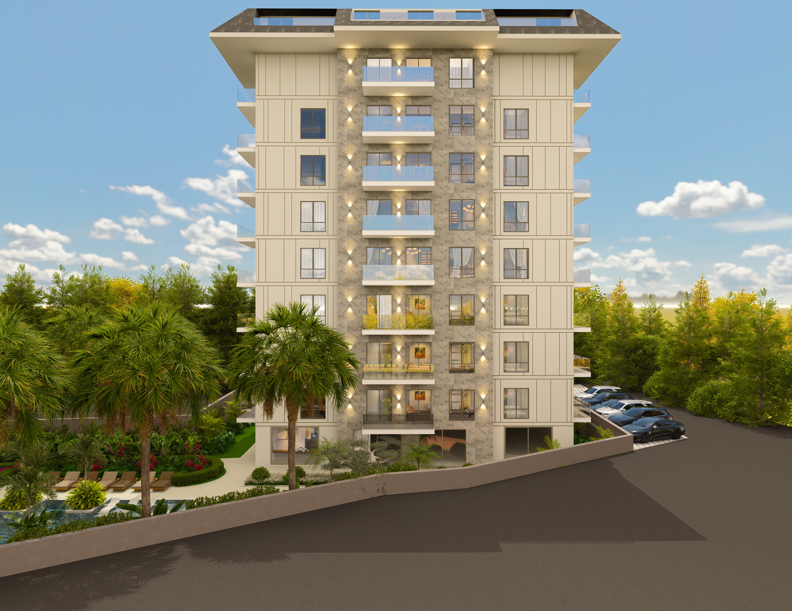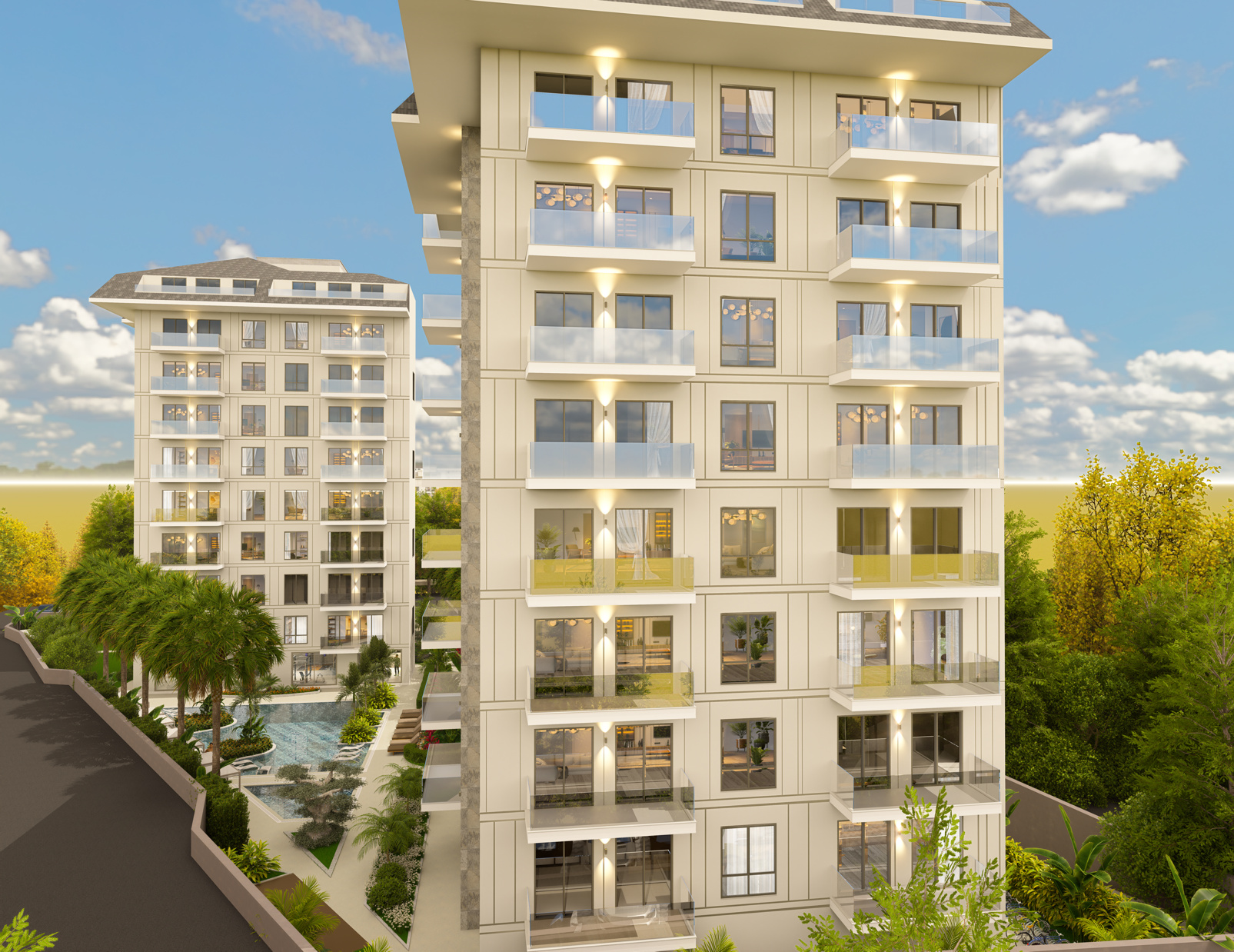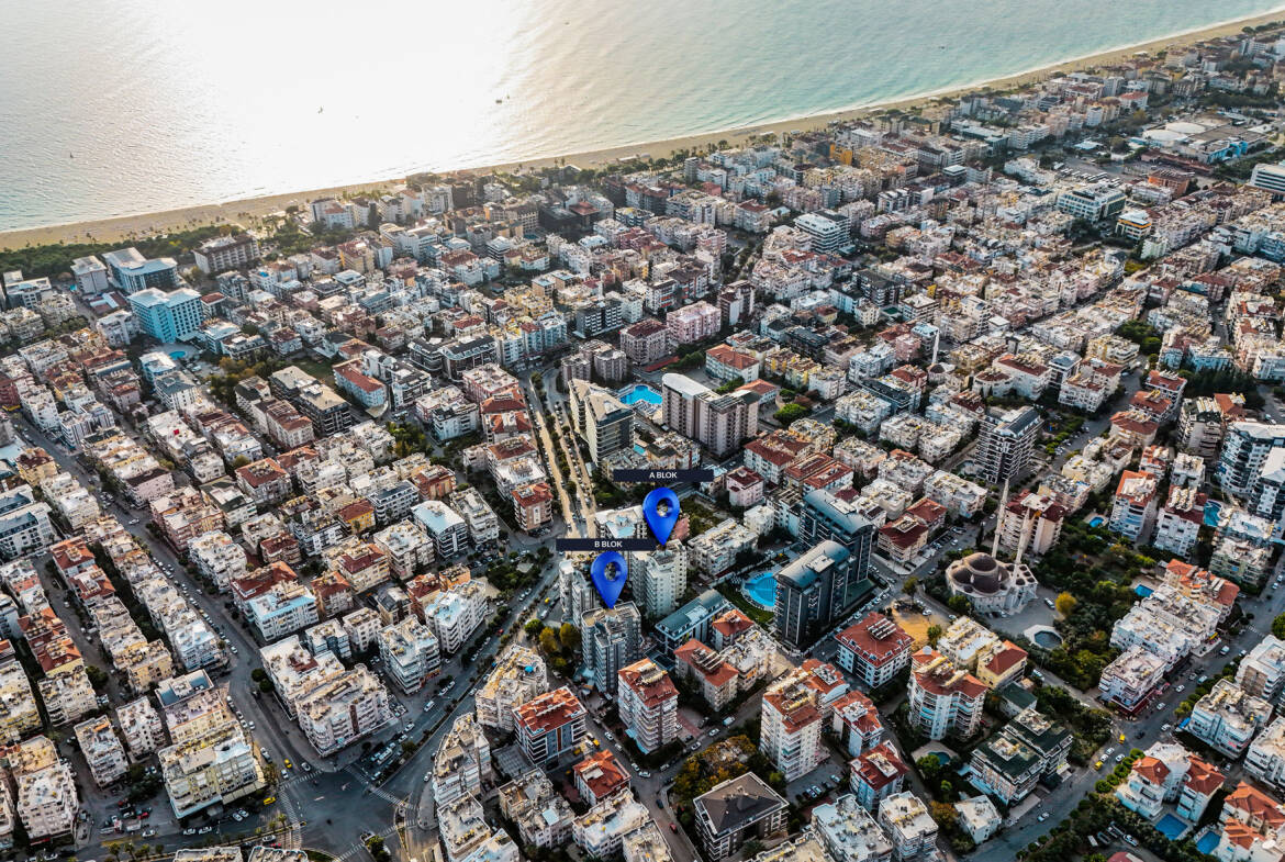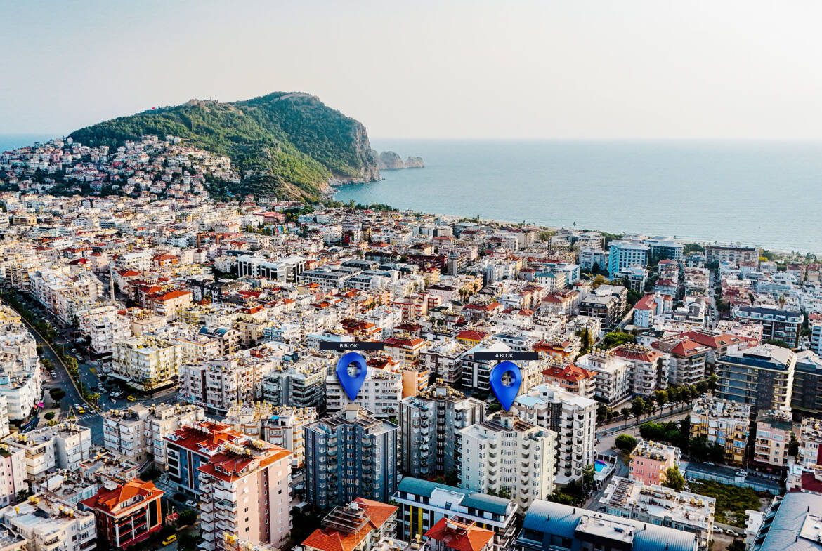 Новый жилой комплекс расположен в одном из самых престижных и востребованных районов Аланьи — Клеопатра, всего в 580 метрах от знаменитого песчаного пляжа. Это идеальное сочетание центральной локации, курортной атмосферы и высокого уровня комфорта для жизни и инвестиций.