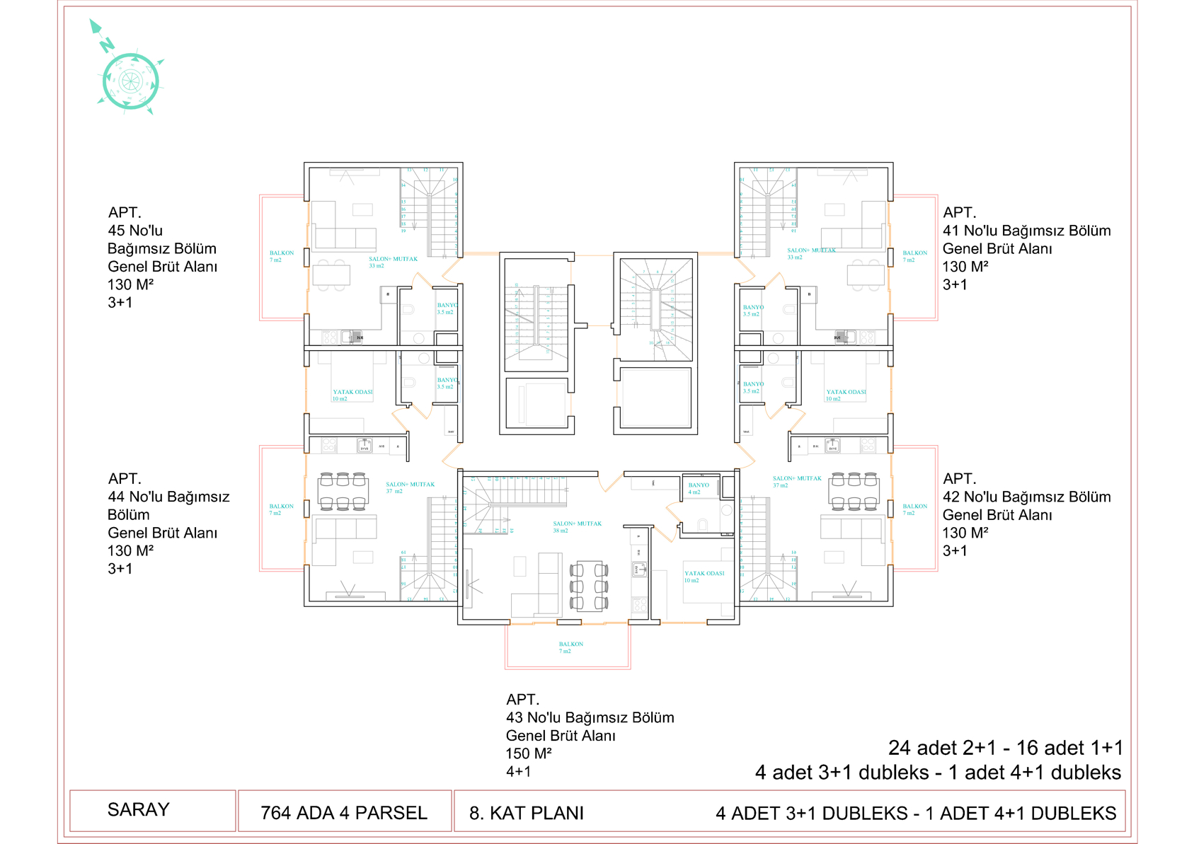 • пентхаусы 3+1 — 130–135 м²